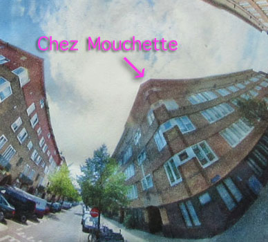 Voici ma maison à Amsterdam et la fenêtre de ma chambre est au dernier étage, juste en dessous du "M"